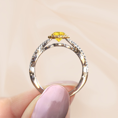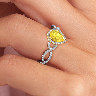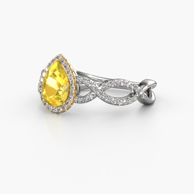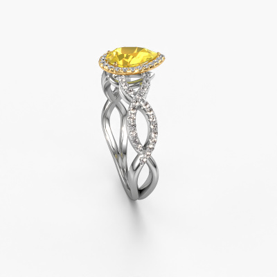 De naam van deze verlovingsring is de Dionne pear. Hij is gemaakt van 14 Carat witgoud en gezet met 7x5 mm gele saffier. Houdt je vriendin van accessoires met een exclusieve uitstraling? Of wil jij haar graag laten zien dat zij alleen het mooiste juweel verdient? In deze witgouden verlovingsring smelten ambachtelijk vakmanschap, liefde en passie samen met de modernste technieken. Het vraagt een geoefend oog, geduld en een vaardige hand om deze verlovingsring tot in de kleinste details perfect samen te stellen. Maar daar gaan onze goudsmeden dan ook absoluut voor! De zetting van deze zorgvuldig geselecteerde gele saffier geeft de witgouden twist verlovingsring extra allure. De stijl kun je verder aanpassen naar de smaak van jouw vriendin, door een keuze uit diverse edelmetalen en edelstenen. Op die manier creëer jij een unieke verlovingsring voor de meest exclusieve vrouw in jouw leven! Dit juweel is gemaakt om aan je vinger te stralen, ieder sieraad wordt met liefde door onze goudsmeden met de hand gemaakt.Wellicht is het je opgevallen dat onze prijzen gemiddeld 30% lager liggen dan bij een andere juwelier. En dat terwijl de kwaliteit in de meeste gevallen nog beter is! Dit komt doordat onze goudsmeden je verlovingsring direct in ons eigen atelier vervaardigen. Hierdoor hoeven we geen dure voorraden te hanteren en kunnen we ieder gewenst detail direct op jouw verlovingsring aanbrengen.Ons team ontwerpt dagelijks nieuwe ringen in diverse stijlen. Heb je zelf een pavé solitaire verlovingsring ergens gezien, die jij het liefst aan jouw geliefde zou willen geven? Je kunt altijd jouw ideeën en ontwerp met onze sieradenontwerpers bespreken, want wij zetten graag jouw ontwerp om tot een exclusieve verlovingsring. Je kunt tijdens het ontwerpproces steeds meekijken, omdat het ontwerp in een zeer gedetailleerde 3D tekening wordt omgezet. Daarbij kun je een dummy bestellen van het uiteindelijke ontwerp. Een dummy is een kunststof ring, die precies dezelfde vormen heeft als jouw uiteindelijke ontwerp. Je kunt deze passen en zien of de ontworpen verlovingsring helemaal naar jouw wens is. Wij sturen je graag een vrijblijvende offerte, waarbij je ongetwijfeld versteld zult staan over de prijs en de kwaliteit van de ring en edelstenen.Om het voor jou makkelijker te maken kun je ieder besteld sieraad binnen 30 dagen na aflevering eenvoudig weer retour sturen.