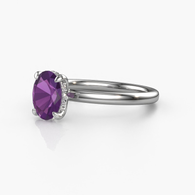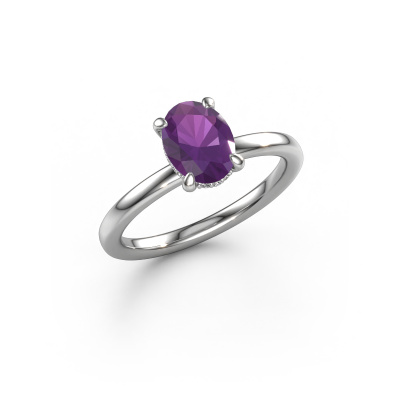 Deze verlovingsring heeft de naam Simone OVL 2. Deze ring, uitgevoerd in 14 Carat witgoud is gezet met amethist. Ben je op zoek naar een unieke witgouden verlovingsring met een eigentijdse uitstraling? Dan is dit een mooie ring, die je zelf naar jouw of haar smaak verder kunt aanpassen. In deze eigentijdse verlovingsring is prachtige amethist verwerkt. Deze is zorgvuldig geselecteerd, want op jouw gracieuze verlovingsring mag alleen de mooiste edelsteen schitteren. Onze goudsmid vervaardigt jouw verlovingsring in ons eigen atelier, en plaatst de amethist met uiterste precisie in de ring. Vervolgens wordt deze bijgewerkt en gepolijst totdat het resultaat zichtbaar is: de perfecte verlovingsring voor de liefde van jouw leven!Omdat wij zelf alle verlovingsring maken en direct aan jou leveren kunnen wij je een verlovingsring leveren tegen een prijs die je nergens anders zult tegenkomen. Een ring wordt pas gemaakt als we een bestelling krijgen, hierdoor hebben wij geen dure voorraden en kunnen wij je de beste prijs garanderen. Wij begrijpen dat het kopen van een verlovingsring online spannend is en willen daarom je zoveel mogelijk informeren over alle specifieke eigenschappen van de ring die jij koopt.Heb je zelf een speciale ring in gedachten, die je wellicht ergens gezien hebt? Je kunt je ideeën altijd met ons bespreken, wij zetten graag jouw ontwerp om tot een unieke verlovingsring. Het ontwerp kun je volgen, omdat wij met 3D tekeningen werken. Hierdoor krijg je al een realistische indruk van hoe jouw ontwerp er in het echt uit komt te zien. Wij sturen je graag een vrijblijvende offerte, waarbij je ongetwijfeld verwonderd zult zijn over de prijs in combinatie met de uitstekende kwaliteit die we aanbieden.Om het voor jou makkelijker te maken kun je ieder besteld sieraad binnen 30 dagen na aflevering eenvoudig weer retour sturen.