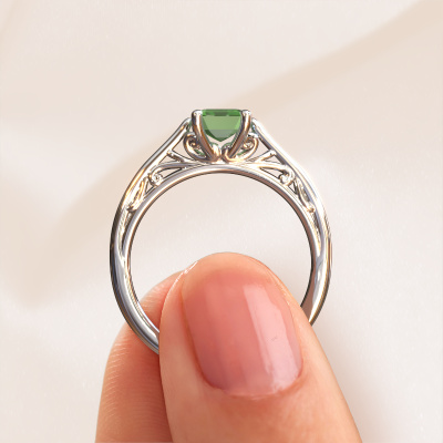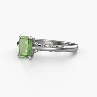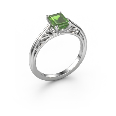 Deze verlovingsring heeft de naam Shannon eme. Deze verlovingsring uitgevoerd in 14 Carat witgoud is gezet met toermalijn groen. Een bijzondere witgouden vintage ring, deze unieke verlovingsring die jouw liefde van je leven zeker laat stralen! En dat is precies waar wij voor gaan. In deze fantasie verlovingsring zijn prachtige toermalijn groen verwerkt. Je kunt natuurlijk iedere edelsteen die wij aanbieden hierin laten verwerken. De edelsteen is zorgvuldig geselecteerd, want wij vinden dat op jouw verlovingsring alleen de mooiste edelsteen mag schitteren, toch? Onze goudsmid vervaardigt jouw verlovingsring in ons eigen atelier, en plaatst de toermalijn groen met uiterste precisie in de ring. Vervolgens wordt deze bijgewerkt en gepolijst totdat het resultaat zichtbaar is: de perfecte verlovingsring voor de liefde van jouw leven! Dit juweel is uniek, doordat je deze ring geheel naar eigen wensen kunt samenstellen.Wellicht is het je opgevallen dat onze prijzen gemiddeld 30% lager liggen dan bij een andere juwelier. En dat terwijl de kwaliteit in de meeste gevallen nog beter is! Dit komt doordat onze goudsmeden je verlovingsring direct in ons eigen atelier vervaardigen. Hierdoor hoeven we geen dure voorraden te hanteren en kunnen we ieder gewenst detail direct op jouw verlovingsring aanbrengen.Iedere dag is ons team van goudsmeden en sieradenontwerpers aan het werk om nieuwe sieraden te creëren. Het kan zijn dat je ergens een fantasie verlovingsring gezien hebt, die je als basis wilt nemen bij het ontwerpen van jouw unieke ring. Neem gerust contact met ons op en we zullen je een aanbod doen, waar je vrijwel zeker verwonderd zult zijn over de kwaliteit en de prijs.Om het voor jou makkelijker te maken kun je ieder besteld sieraad binnen 30 dagen na aflevering eenvoudig weer retour sturen.