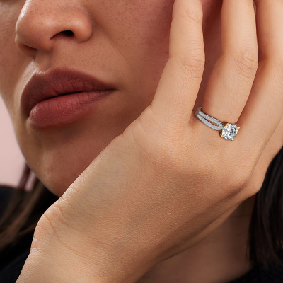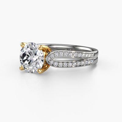 Bovenstaande verlovingsring heeft de naam Antonia rnd 2. Dit type verlovingsring noemen we een pavé solitaire verlovingsring omdat hij een enkele middensteen heeft waarbij de banden van de verlovingsring ook volgezet zijn. De verlovingsring is uitgevoerd in de combinatie 14 Carat witgoud met goud en heeft als middensteen een ronde diamant ter grootte van 2.00 crt en in de zijbanden zijn diamanten gezet. Ieder juweel is speciaal voor jou gemaakt, met aandacht voor detail en design.Deze traditionele witgouden pavé solitaire verlovingsring heeft een schitterende ronde diamant als centersteen, waarbij in de band nog meer diamanten zijn gezet om de middensteen nog meer te accentueren. Doordat de zetting van de pootjes om de diamant open is, vangt de diamant het licht van alle kanten op en schittert hierdoor optimaal. Hierboven kun je zien hoe onze goudsmid de verlovingsring heel precies tot in de kleinste details heeft bewerkt, zodat de wat hoger gelegen diamant een echte eyecatcher is. Wat een prachtige verlovingsring om te geven bij je aanzoek aan de liefde van jouw leven, aan jouw stralende middelpunt!Onze goudsmeden vervaardigen pas je Antonia rnd 2 verlovingsring, zodra je deze besteld hebt. We hebben geen voorraden. Het voordeel hiervan is dat we de voorraad niet door hoeven te berekenen in de prijs, en kunnen daardoor sieraden leveren tegen een bijzonder lage prijs.Heb je zelf een specifieke verlovingsring ergens gezien, die je graag aan jouw geliefde zou willen geven? Bespreek gerust jouw ideeën met onze sieradenontwerpers, want wij zetten graag jouw ontwerp om tot een traditionele verlovingsring. Je kunt tijdens het ontwerpproces steeds meekijken, omdat wij met 3D tekeningen werken. Je krijgt hierdoor al een realistische indruk van hoe jouw ontwerp er in werkelijkheid uit komt te zien. Daarbij kun je een dummy vooraf bestellen. Een dummy is een kunststof ring, die precies dezelfde vormen heeft als jouw uiteindelijke ontwerp. Je kunt deze passen en zien of de breedte en dikte bijvoorbeeld naar wens zijn. Wij sturen je graag een vrijblijvende offerte, waarbij je ongetwijfeld versteld zult staan over de prijs en de kwaliteit van de ring en edelstenen.Om het voor jou makkelijker te maken kun je ieder besteld sieraad binnen 30 dagen na aflevering eenvoudig weer retour sturen.