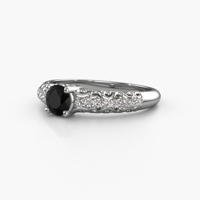 Deze verlovingsring heeft de naam Mellie. Deze verlovingsring uitgevoerd in platina is gezet met 0.82 crt zwarte diamant. Wat maakt jullie relatie uniek? Wat is het, dat jij haar wilt gaan vragen om jouw vrouw te worden? Die unieke band die jullie samen hebben, kun je laten weerspiegelen in een unieke ring. Een unieke pavé solitaire verlovingsring die alleen voor haar vervaardigd is. En daarom past deze vintage verlovingsring heel mooi bij haar. Ieder detail van deze filigraan platina verlovingsring met zwarte diamant wordt met de hand samengesteld, bijgewerkt en gepolijst door onze goudsmid in het atelier beneden. Een prachtige verlovingsring is het uiteindelijk resultaat, uniek en perfect gesmeed tot in de kleinste details! Dat is waar onze goudsmeden absoluut voor gaan! Dit juweel is gemaakt door een team van gedreven goudsmeden en designers. Hierdoor zal dit unieke pronkstuk een echte eyecatcher zijn.Wellicht is het je opgevallen dat onze prijzen gemiddeld 30% lager liggen dan bij een andere juwelier. En dat terwijl de kwaliteit in de meeste gevallen nog beter is! Dit komt doordat onze goudsmeden je verlovingsring direct in ons eigen atelier vervaardigen. Hierdoor hoeven we geen dure voorraden te hanteren en kunnen we ieder gewenst detail direct op jouw verlovingsring aanbrengen.Heb je zelf een specifieke verlovingsring ergens gezien, die je graag aan jouw geliefde zou willen geven? Bespreek gerust jouw ideeën met onze sieradenontwerpers, want wij zetten graag jouw ontwerp om tot een vintage verlovingsring. Je kunt tijdens het ontwerpproces steeds meekijken, omdat wij met 3D tekeningen werken. Je krijgt hierdoor al een realistische indruk van hoe jouw ontwerp er in werkelijkheid uit komt te zien. Daarbij kun je een dummy vooraf bestellen. Een dummy is een kunststof ring, die precies dezelfde vormen heeft als jouw uiteindelijke ontwerp. Je kunt deze passen en zien of de breedte en dikte bijvoorbeeld naar wens zijn. Wij sturen je graag een vrijblijvende offerte, waarbij je ongetwijfeld versteld zult staan over de prijs en de kwaliteit van de ring en edelstenen.Om het voor jou makkelijker te maken kun je ieder besteld sieraad binnen 30 dagen na aflevering eenvoudig weer retour sturen.